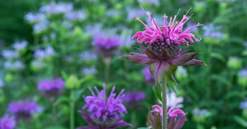 13. Wild Bergamot (Monarda fistulosa): A highly aromatic member of the mint family that is both a self-seeder and a spreader via roots.
